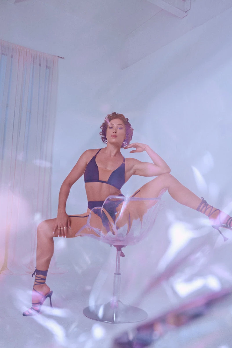 CXIX Silhouette Plunge Bralette – Black With Cream