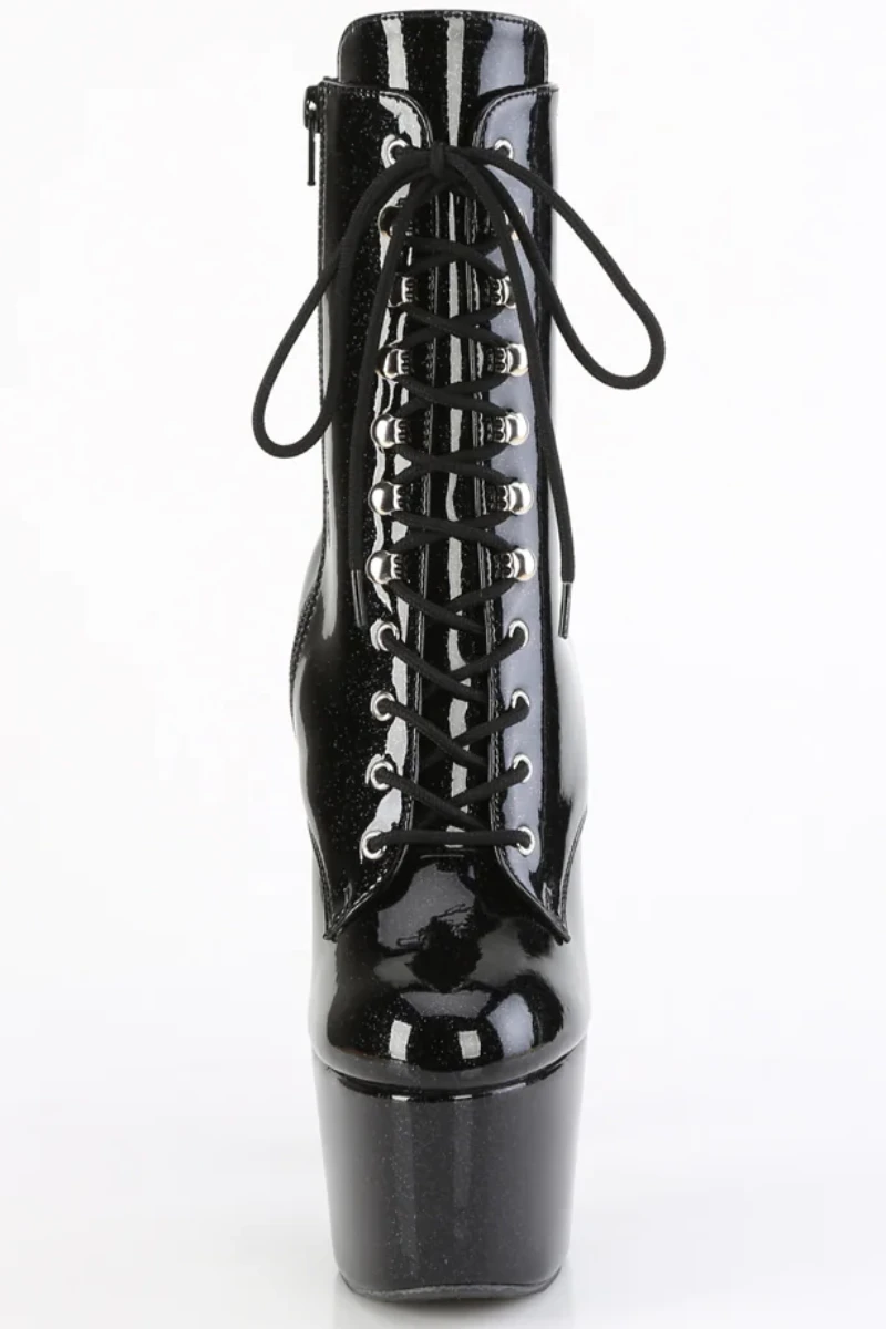- Black Glitter Platform | Lace-Up Front Ankle Boot | Inside Zip Closure