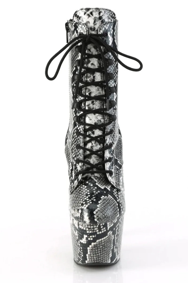 - Snake Skin Platform, Lace-Up Front Ankle Boot