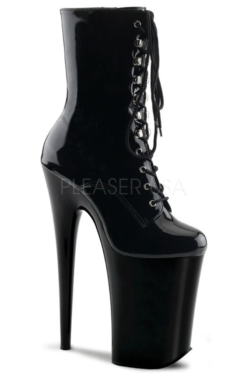 - Patent Black Platform Lace-Up Front Ankle Boot, Inside Zip Closure