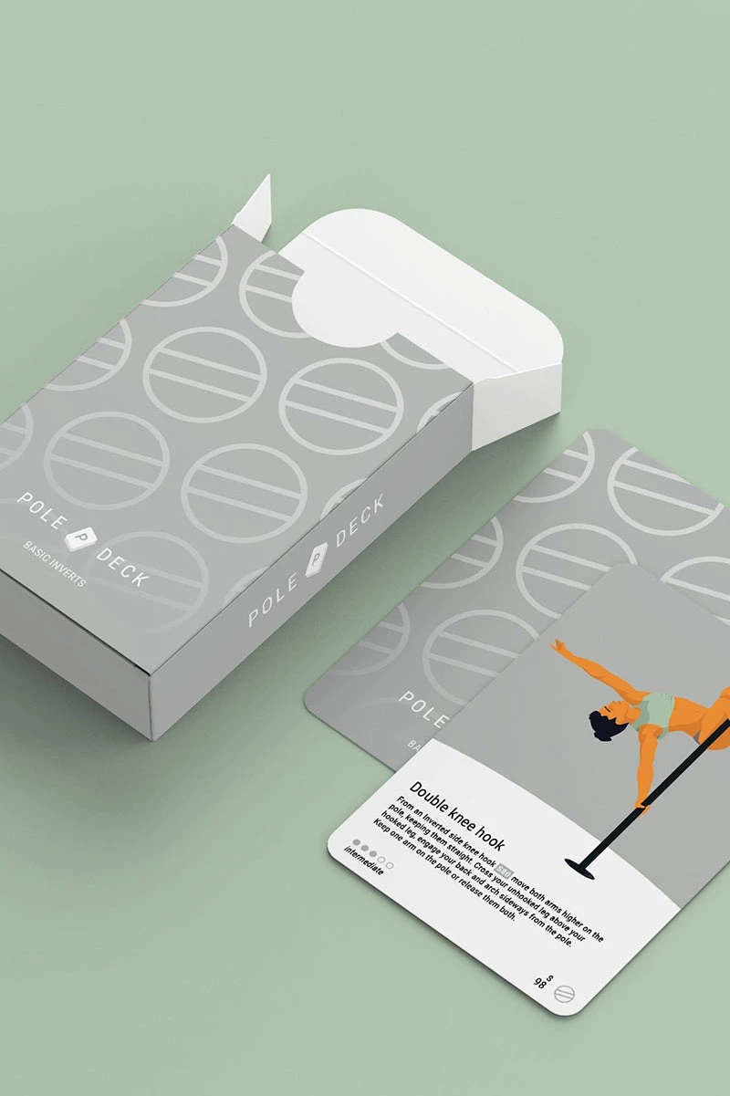 Basic Inverts are highly sought-after milestones in any pole dancer’s journey. These moves require a lot of core strength and willingness to move the body upside down, but they will unlock a whole new world of amazing tricks. You will find inverts as leg hangs, shoulder mounts, laybacks, and their variations. Some moves may seem impossible at first but the more you try, the stronger you become. Start with elementary tricks first, feel safe and try both sides, before trying more difficult tricks. The cards will give more advanced pole dancers the opportunity to combine different figures which will increase the difficulty. There is a short description and the level and category of the tricks on each card.